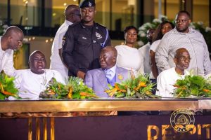 Among the attendees were former President John Agyekum Kufuor, Ibrahim Mahama, real estate developer Nana Kwame Bediako (also known as Cheddar), Dr. Ernest Ofori Sarpong, National Democratic Congress (NDC) Chairman Johnson Asiedu Nketiah, and award-winning rapper Sarkodie.