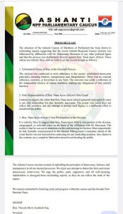 The Ashanti Caucus of NPP Members of Parliament has issued a press release to set the records straight on the recent Regional Caucus election.