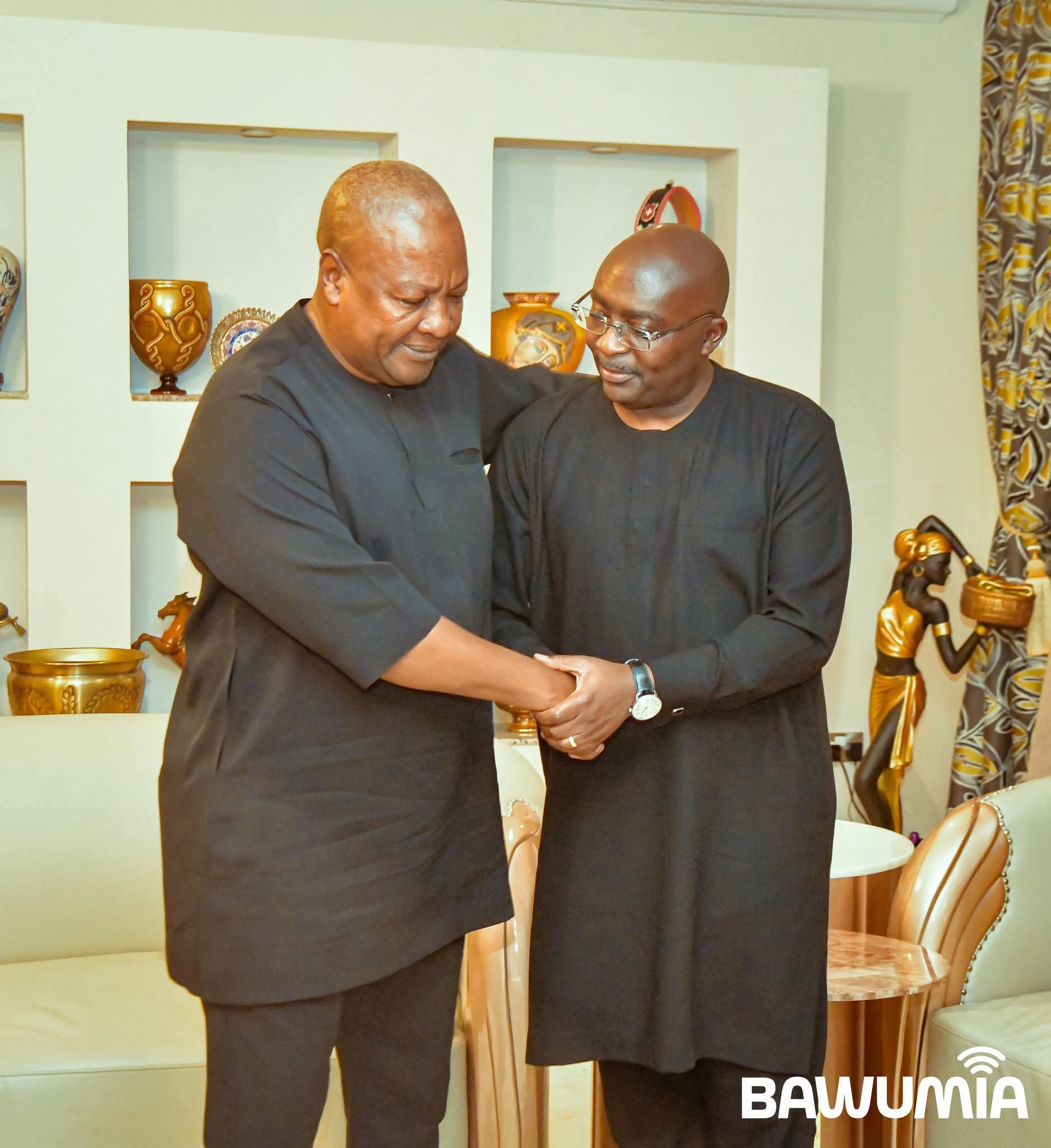 Dr. Bawumia, accompanied by aides, called on President Mahama at his residence, offering condolences and solidarity in a moment of national mourning.