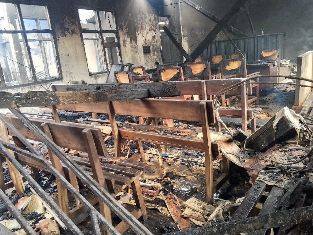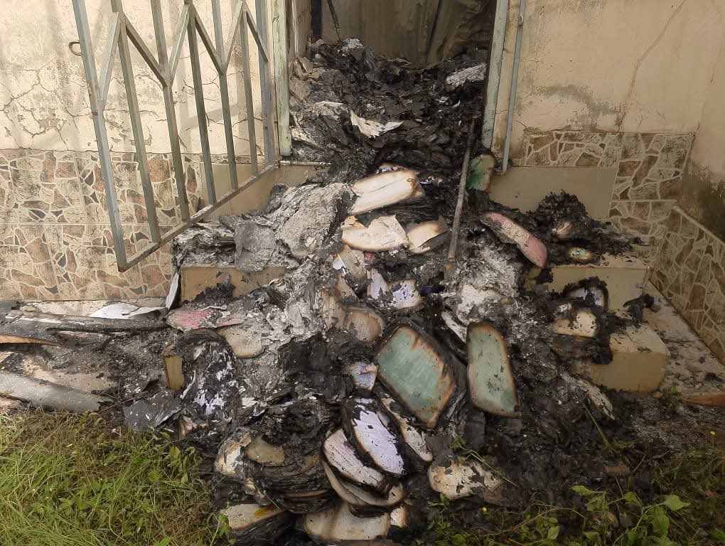 The Courtroom furniture such as wooden benches and desks, was also burnt beyond recognition, leaving scattered ashes across the premises.