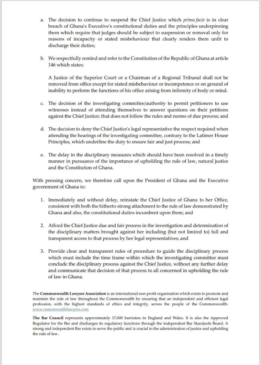 The Bar Council and the CLA have now called on the Ghanaian government to: