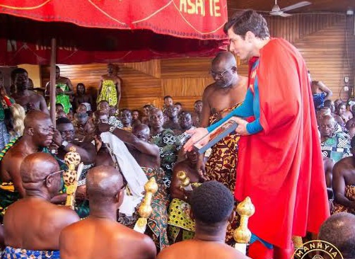 The video ended with him dressed in a striking fugu woven in the NDC’s red, green, white, and black colors, with the message “Follow Akantamansoians.”