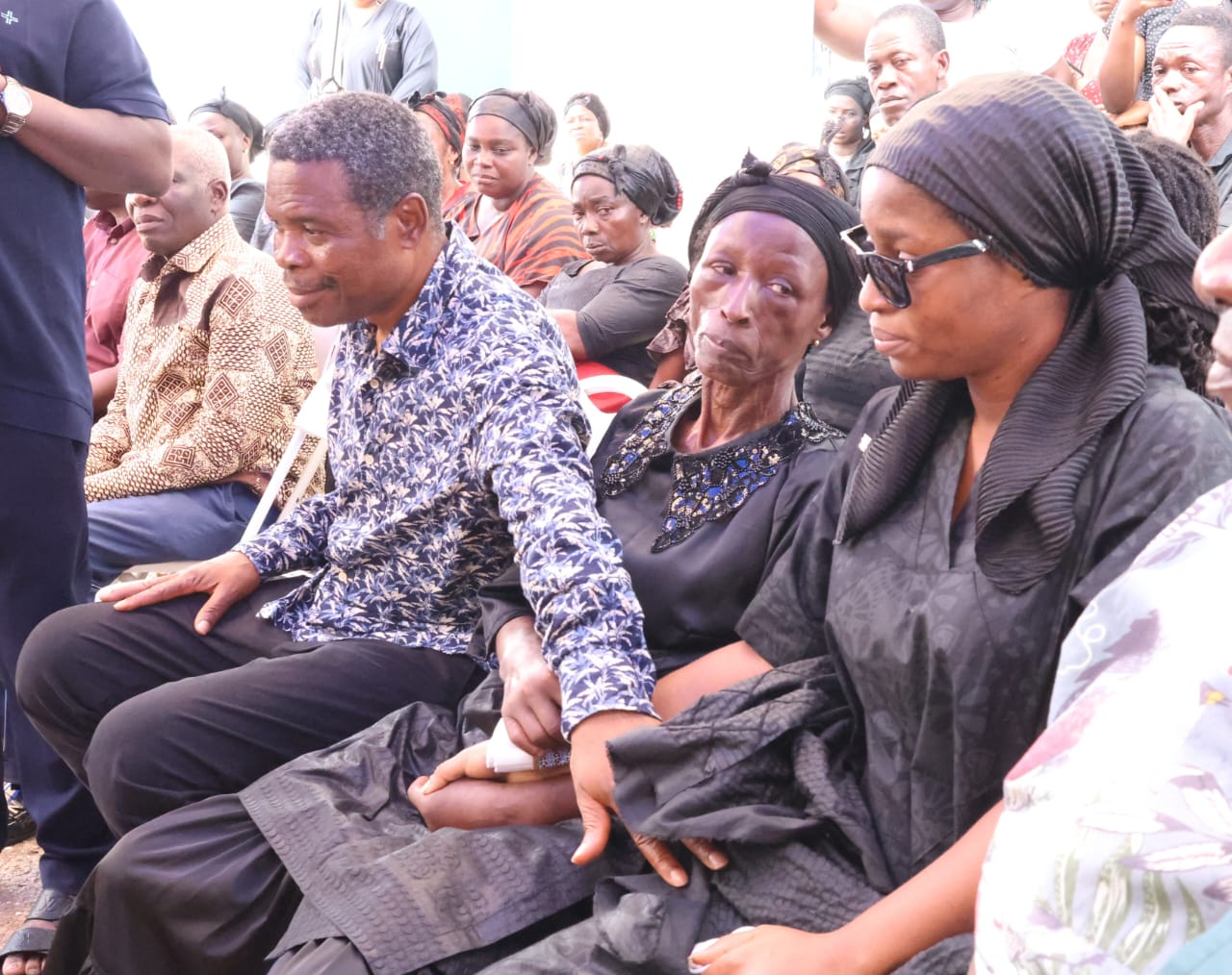The announcement was made in an atmosphere of grief, as members of the bereaved family struggled to contain their emotions. The wife of the elder of the two deceased was seen weeping uncontrollably, reflecting the depth of loss suffered by the family.